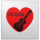 Ukulele inside a red heart. Original design in black and red. Gift idea for ukulele lovers.