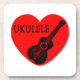 Ukulele inside a red heart. Original design in black and red. Gift idea for ukulele lovers.