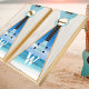 Teal Blue Ukulele Rustic White Wood Tone With Ocean Beach Triangles, Wood grain Cornhole Set. A rustic Faux wood Inlay Triangle Cornhole Set makes the perfect personalized Gift, it's great for individuals who love the beach. Our easy-to-use template makes personalizing easy.