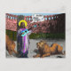 A somewhat irreverent cartoon of a figure in a lions den with a ukulele singing "The Lion Sleeps Tonight."