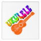 Ukulele drawing with groovy style text. Tie dye effect applied to the text.