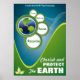 Environmental Earth Day design featuring Planet Earth in a group of green circles, in the surrounding circles are customizable text lines Please Reduce, Reuse and Recycle! Blue sky and green earth colored background with leaves in lower corner. All of the text can be edited, allowing you to add whatever text you want! If you don't need a text line, just delete it! Cherish and Protect the Earth text can be changed to anything you want! Celebrate Earth Day Everyday upper text can be edited!