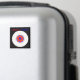 A cool flying disc or frisbee in white with a red and blue design on a black background.