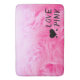 Featuring bright pink fuzzy faux fur with 3 black heart decals and "love pink" text that is fully customizable. Change the text, font, size, color and placement for the best experience.