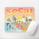 Bright and colorful scene offers a spectacular view of Southern California - wacky characters frolic on the beach and desert of SoCal showcasing Los Angeles, Orange County, San Diego, Santa Barbara, Riverside, Palm Springs, El Centro, Salton Sea, Anza Borrego and Joshua Tree parks as well as the border cities of Tijuana, Tecate and Mexicali. This charming scene has it all – a surfer hangs ten while a killer whale leaps out of the water, zoo animals greet the tourists, wine lovers make a toast as a hiker is noticed by a UFO and much more…
