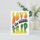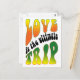 A fun, groovy saying that was a favorite of peace loving hippies in the sixties: Love Is The Ultimate Trip in vibrant colors, psychedelic font and trippy retro word art lettering style.
