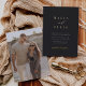 A beautiful minimalist typography based wedding invitation featuring your names in striking gold foil lettering, joined with modern calligraphy script accent lettering. Personalize with your wedding details beneath, and add a full bleed vertical or portrait oriented photo to the back. Our Ash colorway makes a classic statement with white and gold foil lettering on a soft off-black background.