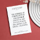 Having your Ultra Minimal Typography Black White Wedding Invitation match the theme of your party is a great detail that your guests will appreciate. The thoughtfulness of a consistent party theme is often appreciated and can show your guests that you can host a cohesive event.