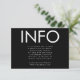 This fantastic clean, tidy well designed modern minimal yet very playful Bold Names & text placement in Black and White for minimalistic style, however is customizable to other colors and is part of a unique suite and collection by Phrosne Ras Design. This would be great for those planning a fun black & white event, with this wedding information Enclosure Card being bold and was inspired by fun-loving people who love a good party and don't mind straying from tradition.