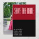 Ultra modern minimalist black and red monogram personalized wedding photo save the date invitation. Simple, plain and chic save the date card with solid red and black background. This card is easily editable. If you need help with the customization of this card or you need more matching products for this collection kindly message me via Zazzle.