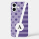 Decorate your phone with this violet-colored polka dot and stripe case! You can customize this case with your monogram initial at the bottom!