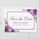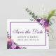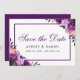 Ultra Violet Purple Watercolor Floral Save The Date Engagement Announcement Card - Purple Frame - Purple Script -Purple Back