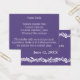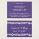 Signature wedding cocktails are the hottest trend and this Ultra Violet drink recipe card makes a fun keepsake for your guests. The front of the card can be customized with your own couple's cocktail recipe if you wish; the back of the card has the Bride and Groom's names and the wedding date printed in white on a solid deep purple background. The original garland design of double vines and leaves creates a simple border with a touch of romance. This Ultra Violet signature cocktail card is a unique and thoughtful addition to your wedding reception.