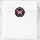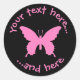 Pink ulysses butterfly. Vector icon with customizable colour. Custom background color. Two custom text fields on circle.