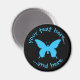 Blue ulysses butterfly. Vector icon with customizable colour. Custom background color. Two custom text fields on circle.