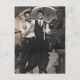 This postcard features two handsome, sharply dressed men from the 1940s standing under umbrellas and laughing.