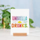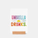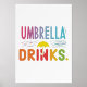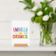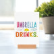 This t-shirt design features the text "Umbrella Drinks" in a fun and colorful mix of tropical hues like lime green, pineapple yellow, and hibiscus pink, perfect for a summer day.
