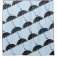 Pattern of vertically aligned graphical umbrellas with drops illustrating water. Most umbrellas are gray, but within the pattern there are also 3 blue umbrellas adding some color. Those 3 umbrellas can be removed from the design if you prefer your curtain all gray. Light golden background color can be replaced.