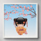 Ume Kokeshi Doll Japanese Geisha Girl Blue Peel And Stick Photo Tile
