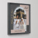 This custom Islamic wall tile features your own photo in front of the Kaaba, beautifully framed with a modern arch design and Arabic calligraphy.