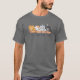 My 11 yo wore adult XL (5’7” 165#). The 8yo is small framed. She wore adult small and tied it in the back. Grandma wore adult large with long sleeve shirt underneath. Tall girl adult medium. Dark haired male adult large. Good quality dark Heather gray, Gildan brand shirt. -it was next up from basic choice and cost about $20 per shirt. Not too thick or thin. Washed and dried well, no major shrinkage. Not see-through. Can wear a bra under it fine. Screen print is just as shown and well done, front and back.