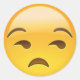 This face is not amused. This is not a face of sadness, it is more of a grumpy, displeased look. Used to express dissatisfaction. The eyes are distinct in their sideways glance, and could be interpreted as an eye-roll, or general disinterest. Also known as Dissatisfied Emoji and Unimpressed Emoji.