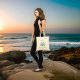 The minute I spotted this item I knew I HAD to order these for my daughter's wedding for the Hotel Goodie Bags since the wedding was held at a vineyard. The quality is great and they were a little bigger than I expected but worked out and will be useful to the recipients to tote their books, papers, lunch etc for future use. The picture shows what we put inside to welcome our hotel guests. I was very satisfied with the printing on the tote and I liked I was able to choose the font and size for the bag.