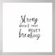 This image features a powerful and inspiring quote in a beautiful, flowing script font. The phrase "Strong doesn't mean never breaking" is a gentle reminder that true strength lies in resilience and the ability to heal, not in the absence of vulnerability or pain. The black text is set against a soft, neutral gray background, creating a clean, minimalist design that focuses entirely on the meaningful message. This image is perfect for sharing as a source of encouragement and a celebration of emotional strength.