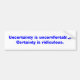 Uncertainty is uncomfortable. Certainty is ridi... Bumper Sticker