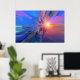 A sunset in unknown realm of liquid land. A very colorful, warm and cool combination of shapes and form in this abstract picture.