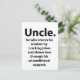 Uncle Inspirational Funny Quote Typography Uncle Postcard designed by Nisha Prabhu. Need a laugh and some inspiration? Send this funny uncle postcard featuring a hilarious typography quote that will bring a smile to your favorite uncle's face. Perfect for birthdays, holidays, or just because. Show your uncle how much you appreciate his wisdom and humor with this unique and eye-catching design. Order now and make his day!