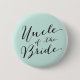This simple minimalist name tag / pin button design features a modern chic black 'Uncle of the Bride' classic calligraphy font script on a plain light baby blue background. Great for any wedding rehearsal, ceremony and bridal party.