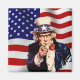 Square magnet with a vintage 1940s image of Uncle Sam on the America flag. See the entire Patriotic 40s Magnet collection in the PARTY FAVORS section.