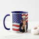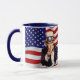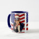 White and navy 11 oz. combo mug with vintage 1940s images of Uncle Sam on an image of the America flag. See matching paper plate, shot glass and coasters. See the entire Patriotic 40s Mug collection in the FOOD/BEV | Dishes section.