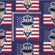 Fabric with an illustration of Uncle Sam with the American flag as a background, 4th of July patriotic design by Maxi Harmony / Radka Kavalcova; blue version