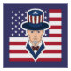 Poster with an illustration of Uncle Sam with the American flag as a background, 4th of July patriotic design by Maxi Harmony / Radka Kavalcova; blue version
