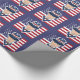Wrapping paper with an illustration of Uncle Sam with the American flag as a background, 4th of July patriotic design by Maxi Harmony / Radka Kavalcova; blue version