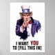 Now you can fill in the blank however you want in this classic Uncle Sam "I Want You to....." poster design!