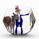 old glory symbol hugs a sweet smiling donkey while a pissed off elephant has to leave the ground