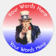 This patriotic custom sticker is decorated with Uncle Sam that can be customized with a choice of words above and below that allow you to personalize it with the name of a person, place, position, etc.