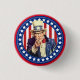 A symbol of the United States National Pride and call to action, this image of Uncle Sam includes a round stars and stripes background in red, white and blue.
