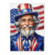 Smiling uncle Sam USA American Icon wearing an American suit and a waving American flag in the background
