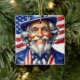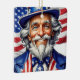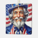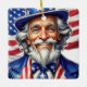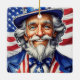 Smiling uncle Sam USA American Icon wearing an American suit and a waving American flag in the background
