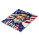 Smiling uncle Sam USA American Icon wearing an American suit and a waving American flag in the background
