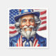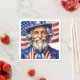 Smiling uncle Sam USA American Icon wearing an American suit and a waving American flag in the background