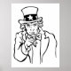 Simple black and white line drawing of Uncle Sam doing his famous WE WANT YOU pointing finger pose. Easily customize and add your own slogan. Illustration available on various gifts and products.
