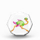 A very uncommon ostrich running flaunting his rainbow-colored feathers.
