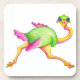 A very uncommon ostrich running flaunting his rainbow-colored feathers.