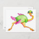 A very uncommon ostrich running flaunting his rainbow-colored feathers.