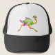 A very uncommon ostrich running flaunting his rainbow-colored feathers.